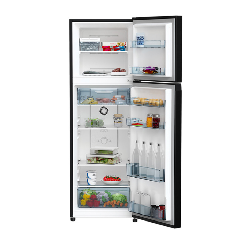 Hitachi FUJI SERIES 257L HRTN5275MFBBKSG Refrigerator is a stylish and efficient top-freezer fridge designed to help families store and preserve food with even cooling, flexible organization, and advanced freshness features. With a net capacity of approximately 257 litres, it offers ample storage space for daily groceries, drinks, and frozen items.