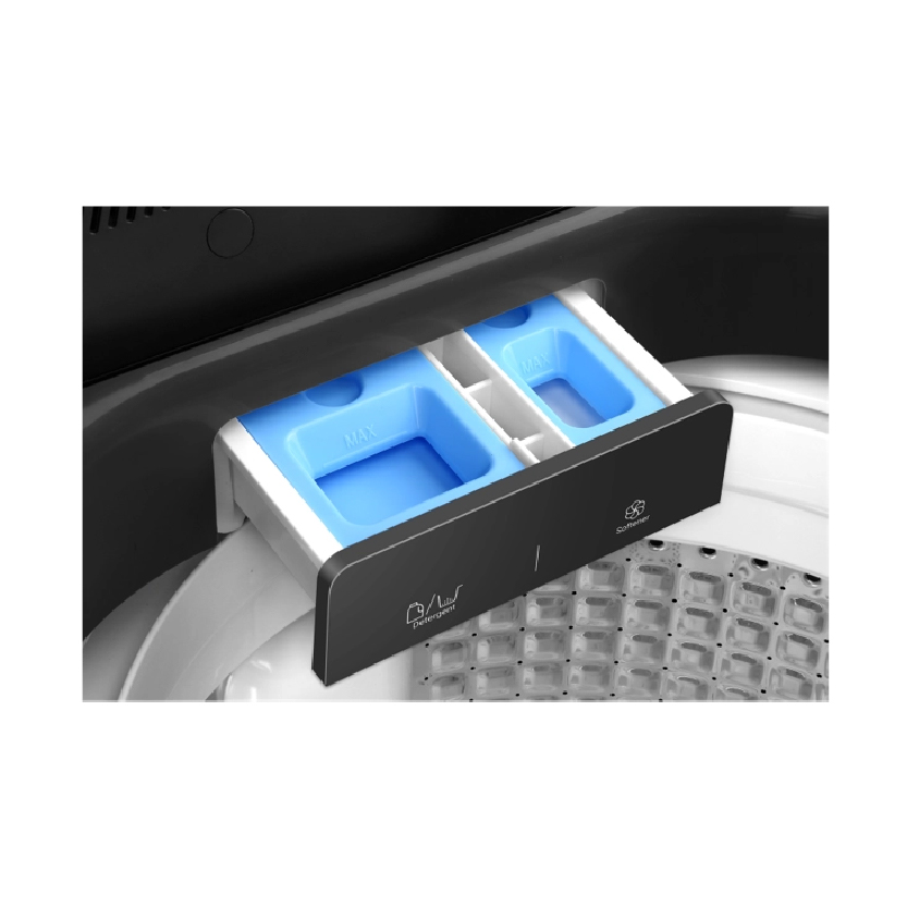 The washer blends practicality with thoughtful design, featuring a soft-closing tempered glass top lid and a clean, integrated water inlet that adds to its modern appearance. An air-vented top lid design supports the Fresh Air System, helping keep clothes fresh inside the drum after wash cycles are completed. For improved hygiene, the drum, pulsator, and detergent dispenser are all treated with anti-bacterial technology, making it a suitable choice for health-conscious users.