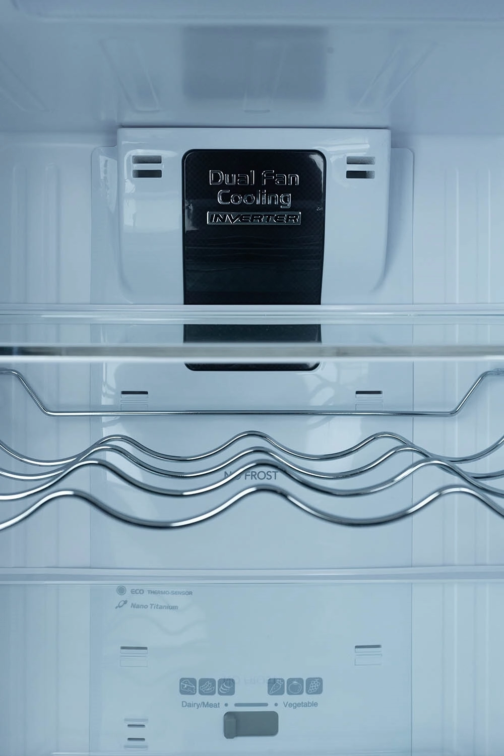 For improved hygiene and freshness, the refrigerator is equipped with the advanced Nano Titanium Filter, which helps reduce odors and airborne bacteria inside the cabinet. Intelligent features such as the Eco Thermo Sensor, responsive Touch Screen Controller, and a flexible Selectable Mode Compartment allow users to customize cooling and storage according to daily needs.