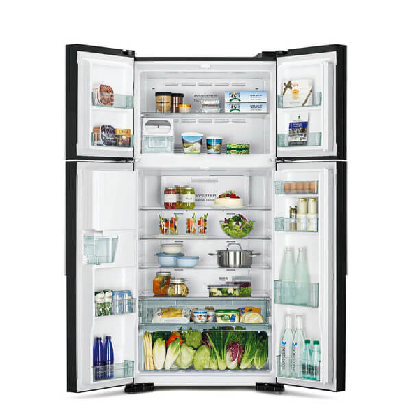 The Hitachi R-W690P7PB (GBK) 540L Inverter Refrigerator is a premium appliance designed for modern Bangladeshi households that value advanced technology, energy efficiency, and elegant design. With a large 540-liter net capacity, including a 144L top-mounted freezer and 396L refrigerator compartment, this 4-door refrigerator is well suited for medium to large families requiring organized and spacious food storage.