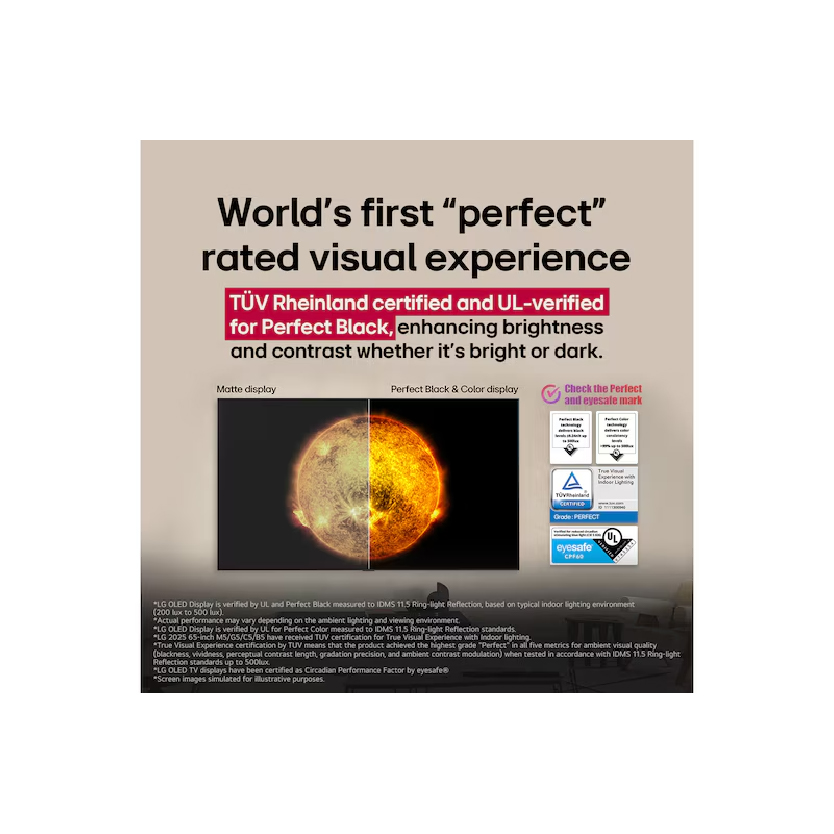 Sound quality matches the visuals with Dolby Atmos, delivering immersive, room-filling audio that places you at the center of the action. The smart experience is powered by webOS 24, featuring advanced LG AI tools like AI Voice ID, AI Search, AI Concierge, and voice control, all accessible through the AI Magic Remote.