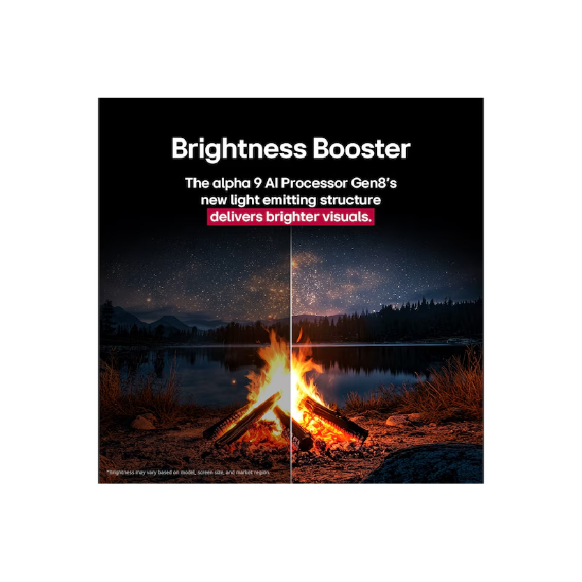 Advanced AI processing enhances every frame by improving resolution, brightness, depth, and facial detail while intelligently upscaling content to near-4K quality. - Brightness Booster for Enhanced HDR Performance