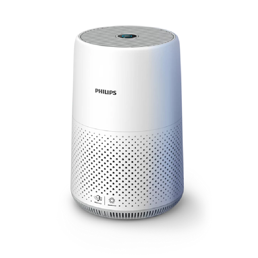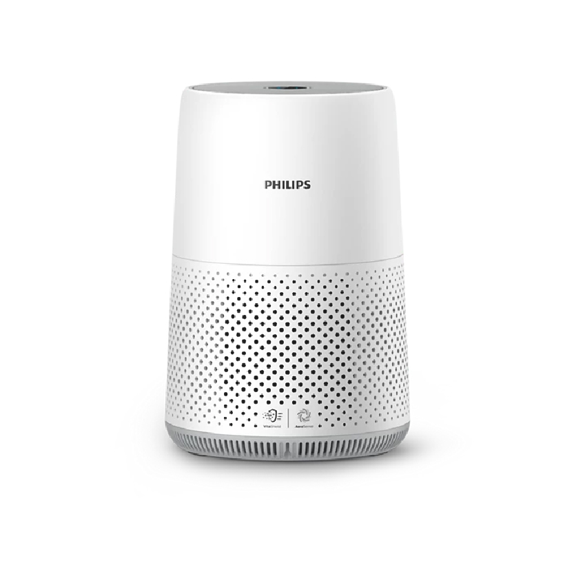 The Philips Air Purifier AC0850 (800i Series) is a compact and efficient air cleaning solution designed to improve indoor air quality in living spaces up to about 49 square metres. It uses a triple-layer filtration system including a NanoProtect HEPA filter, active carbon filter, and pre-filter to capture up to 99.5 % of particles as small as 0.003 microns, helping reduce dust, pollen, pet dander, smoke, odors, and other airborne pollutants.