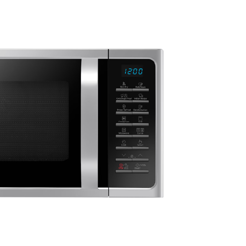 The Samsung Microwave Oven MC28VS is a premium, feature-rich kitchen appliance designed for households that want faster cooking, healthier meals, and versatile performance all in one elegant machine. With its spacious 28-liter capacity, this microwave is perfect for families, offering enough room to cook larger dishes, reheat meals, and prepare a variety of recipes with ease.